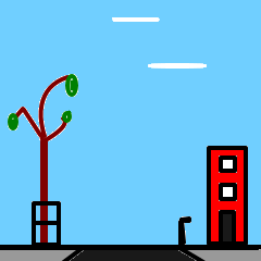 it was a nice day. the sun was shining over the tall buildngs of the city. a few happy looking white clouds drifted by.